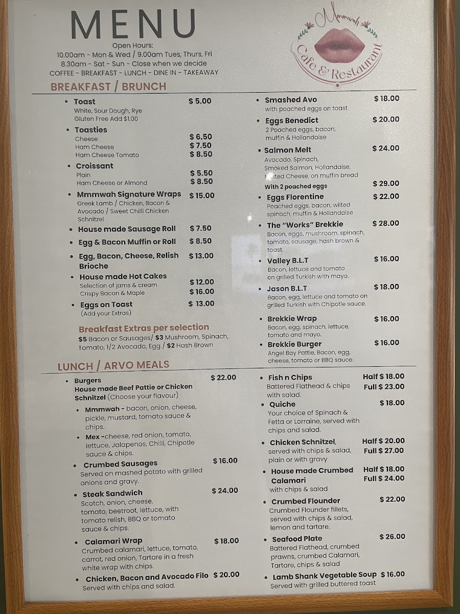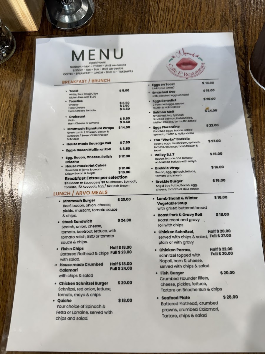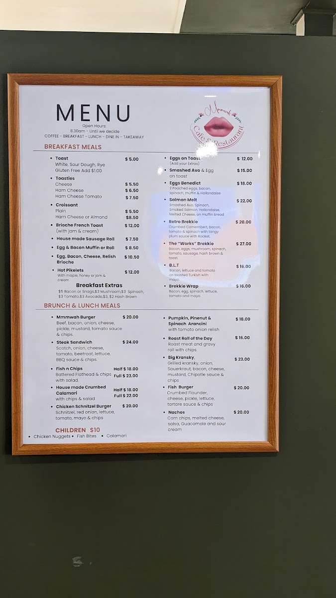 - Breakfast Meals: This group includes lighter fare such as toast, ham and cheese options, brioche French toast, hot pikelets, and further variations of egg and bacon sandwiches. These selections balance simple items with more filling choices.